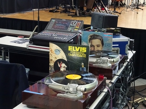 ライブと映画の間には、トークショーを行いながらレコードでエルビスプレスリーの名曲を流しました。さすがラジオ関西、CDではなくレコードです