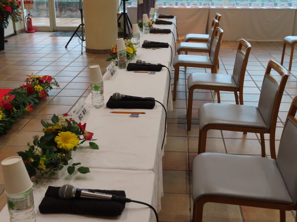 感染防止の為、審査員のマイクも各自1本です、しかし「いつまで続けるコロナ対策」