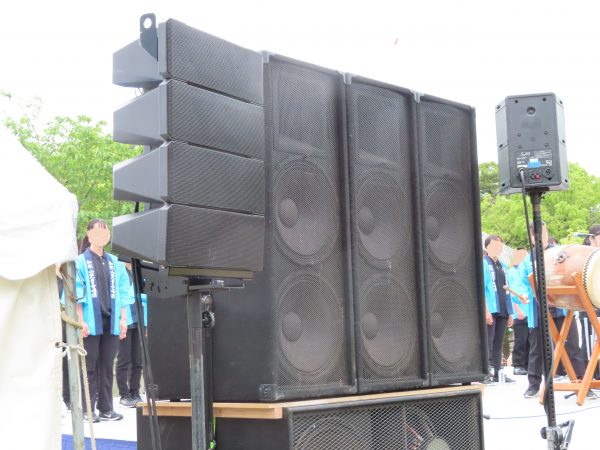 とても珍しい事ですが、音響設備及びオペレーションがダブル仕込みです。弊社はTOA HX-7Bです。これは担当する演目が違う事からです、弊社はお芝居で