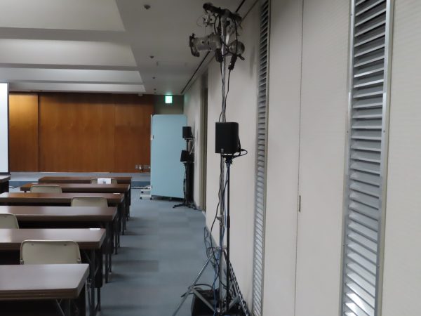 会場のマイクでは、せっかくパネラーの先生がとても為になる事を話されても、音響が悪くて伝わらないと言う事からここ十年は弊社が音声担当しています、大きいスピーカーは必要なく、小柄でしっかりと声を再生してくれるスピーカー「Martin Audio CDD5」です