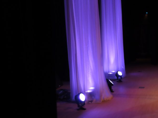 ジョーゼットを円柱にしてLED-PARを中に入れたら簡易行燈の完成です、予算もかから無し、ステージは少しでも飾ってください